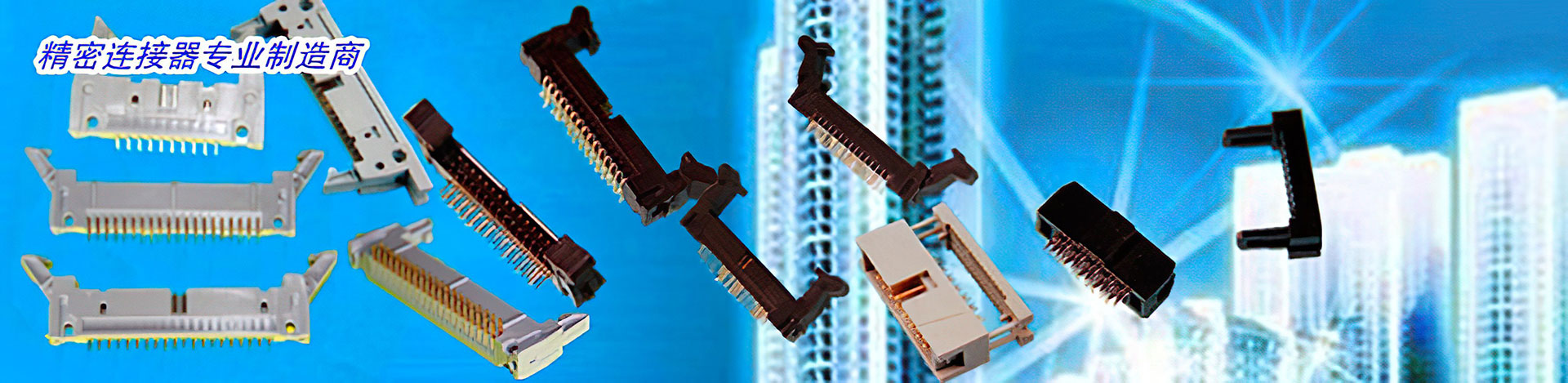 公司生產的主要產品有金手指插槽、耐高溫金手指插槽、總線插座、805總線插槽、美式匯流排Card Edge Connectors(間距=0.8/1.0/1.27/2.54/3.175/3.81/3.96mm);高速板對板連接器;排針排母(間距=1.0/1.27/2.0/2.54mm);歐規DIN41612連接器(B,C,Q,R型,大電流H15,D32,F32,F48及F24H7型(PIN數有8,10,15,16,20,30,32,48,64,96,120,128,160PIN等);牛角、簡牛及配套IDC壓線頭(間距=1.27/2.0/2.54mm);D-SUB連接器;MINI-PCIE插槽;DDR-III/DDR-V內存條連接器;各類SD,TF卡座連接器;圓孔IC座;PC104連接器;2mm CPCI高頻高速連接器(包括FUTURE BUS和HARD METRIC);WAFER針座,HOUSING塑殼及端子(pitch=1.0,1.25,2.0,3.0,4.2mm);軟性排線(FFC)及軟性排線連接器(間距=0.3/0.5/1.0/1.25/2.54mm);各種封裝老化測試座等。